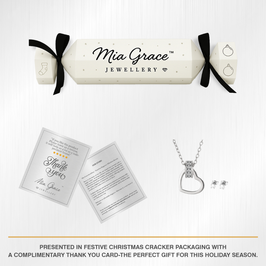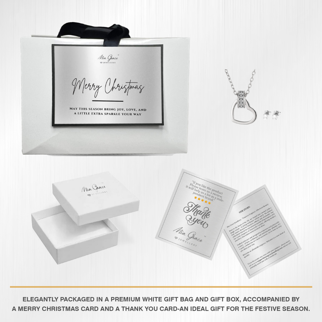 - Give the gift of love with this impossibly romantic ladies necklace featuring a delicate Heart Charm Pendant with a Swarovski Crystal encrusted link and a glittering pair of solitaire Swarovski Crystal Earrings.