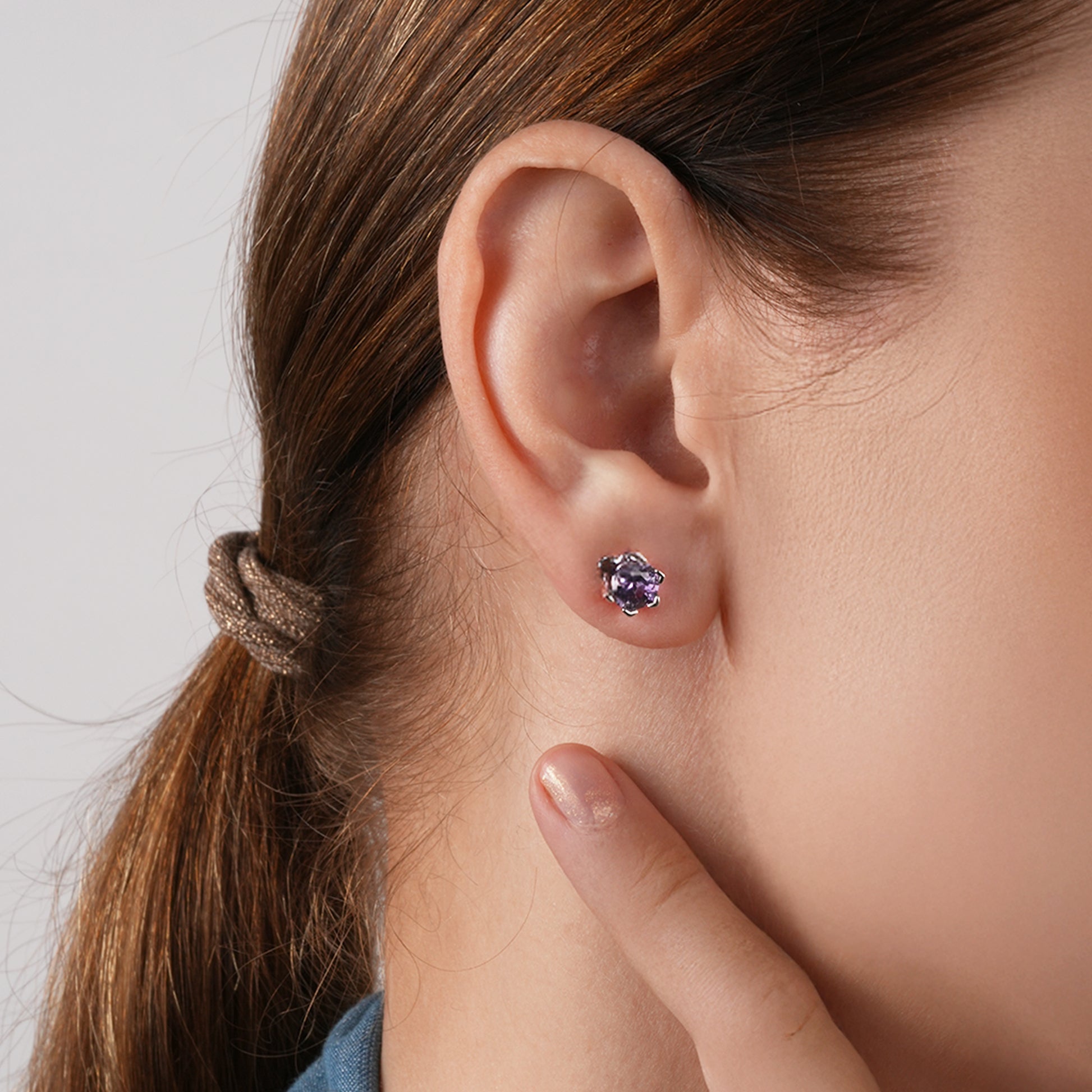Unique Colour-Changing Gemstone: This Nickel Free Hypoallergenic Silver 925 Women Jewellery Round Cut Alexandrite Gemstone Round Stud Earrings features a lab-grown colour change gemstone that varies from blue to purple to green, making it a truly one-of-a-kind piece.