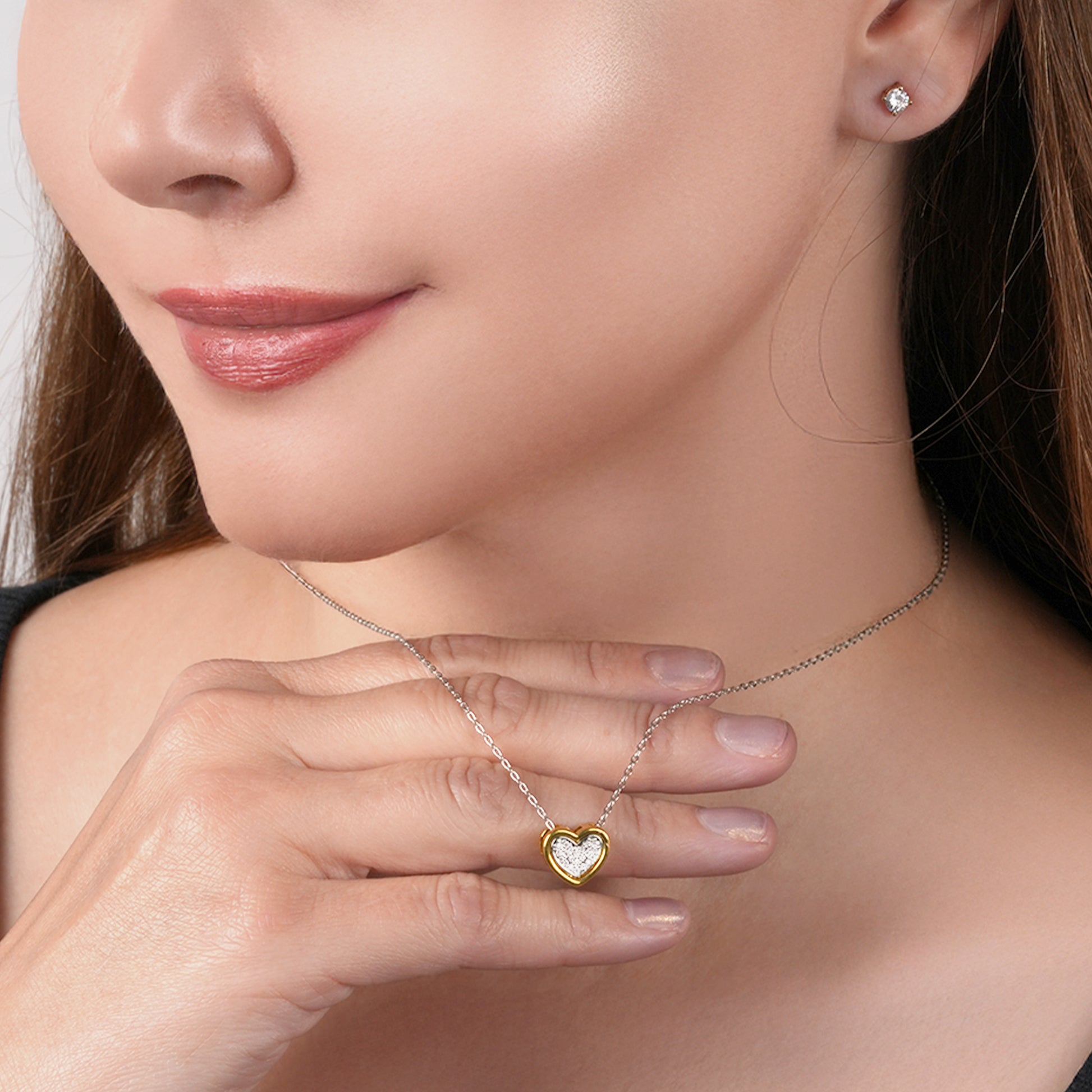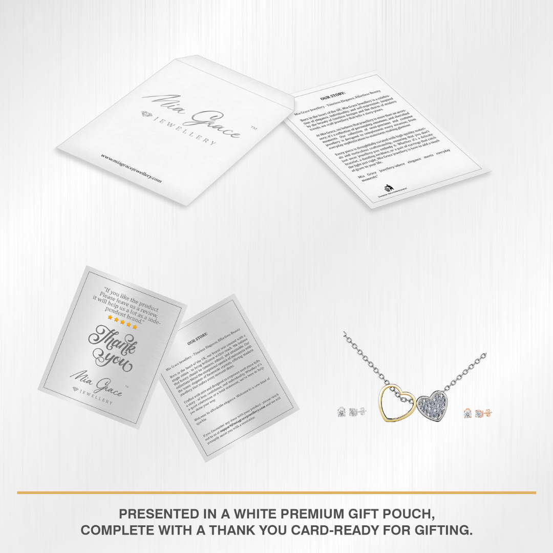 A beautiful, classic, and elegant jewellery set. A stunning silver heart-charm pendant with a central Swarovski ® Crystal. This necklace set comes with exquisite matching earrings, with a silver heart-outline studs, encrusted with a central Swarovski® crystal each. A sophisticated, beautiful, and stylish jewellery set made for queens.
